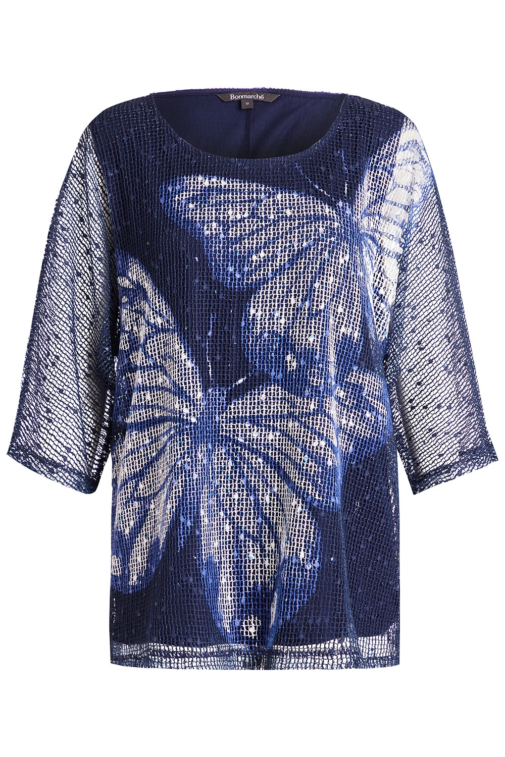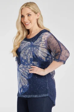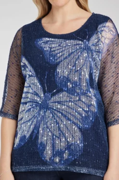 This beautiful butterfly designed top is great for a lot of different occasions. The popcorn fabric and shimmery design make this top a must-have. Pair with black trousers and heeled boots for a more dressed up look.