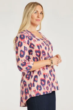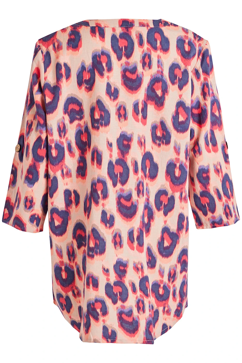 This longline animal print tunic is a fun addition to your wardrobe. It has non-functioning buttons down the front and buttons on the arms to allow you hold up the sleeves. It is made of a woven material that will be breathable as it gets warmer. Wear with jeans and trainers for a casual look.