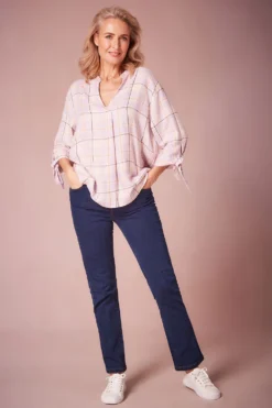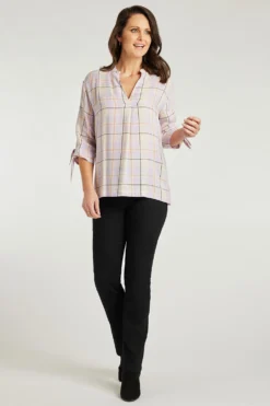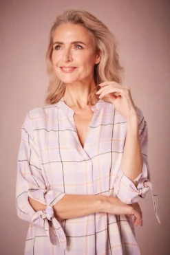 This pale pink check shirt is perfect for layering up in the colder months. Pair with a scarf and gilet for a cosy look or with jeans and a leather jacket for a more weekend outfit.