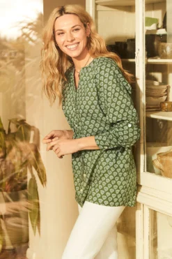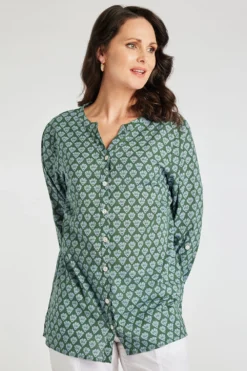 AUTONOMY | For a twist on a classic design, this long sleeve shirt features a beautiful tile print pattern. The buttons do up through the front and it is topped with a notch neckline. Simply team it with your favourite jeans for an easy weekend outfit.