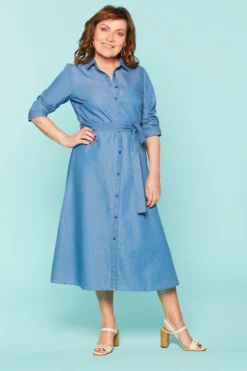 Stand out this Summer with this chambray shirt dress. The beautiful denim colour paired with the shirt dress design and being a part of Lorraine Loves, chosen by Lorraine Kelly, makes this dress a must have. Pair with strappy sandals and a small handbag for a perfect afternoon tea look.