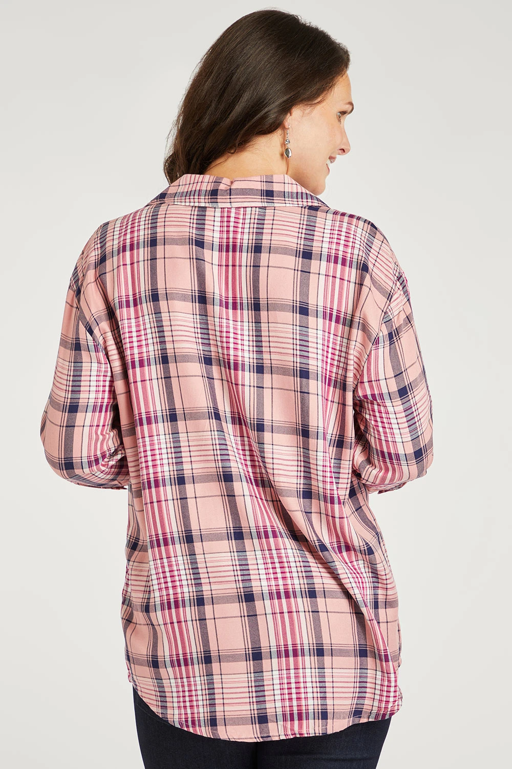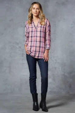 Every wardrobe must have, a classic check shirt for a go to smart-casual outfit. The shirt has 3/4 sleeves, a collared neck and is in a flattering overhead style. Simply style with jeans.