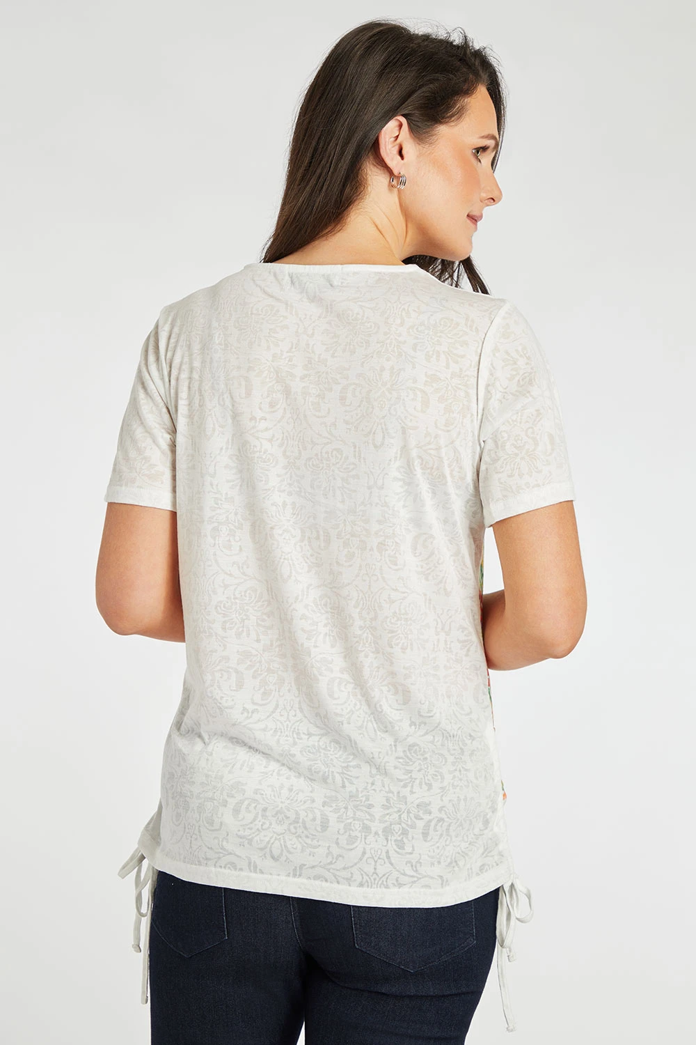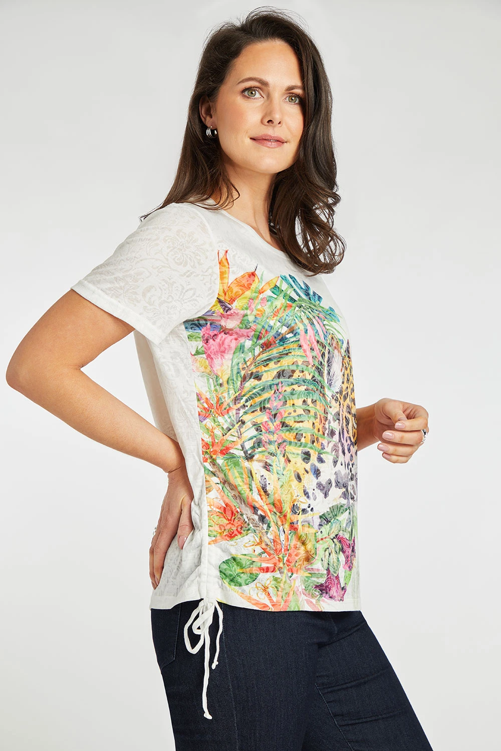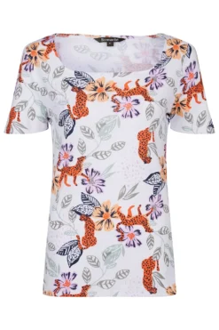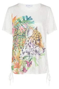 Add a pop of colour to your summer wardrobe with this cheetah print top. Featuring a pretty background floral design and tie sides on each side, team this top with white jeans or crops for the perfect summer look.