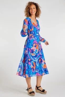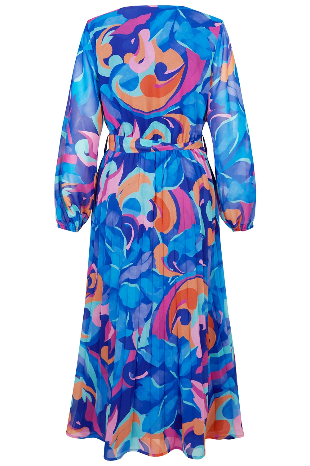 Get dressed up this Summer with this flowy wrap dress. A stand out piece chosen by Lorraine Kelly herself. The bold floral swirl print paired with the V-neck and long sleeves. Perfect for a wedding or a fancy occasion. Pair with sandals and a pink handbag for a stand out look.