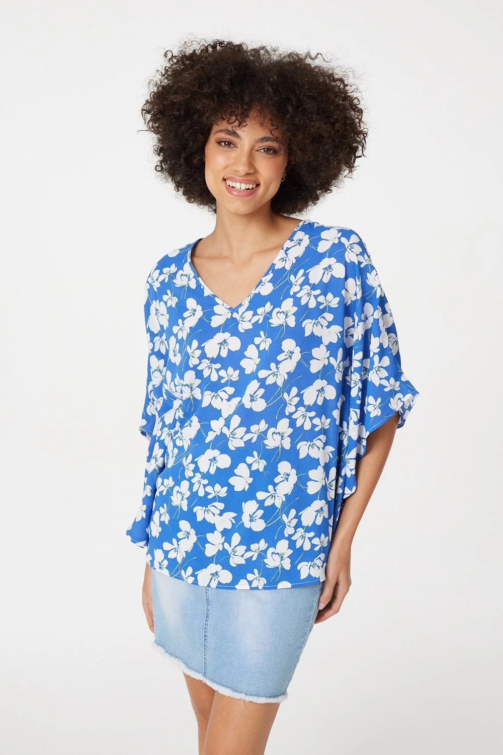 IZABEL LONDON | Every warm weather wardrobe needs a versatile floral print like this relaxed fit blouse. It has a v-neck, 1/2 length flared batwing sleeves, a relaxed fit, and a hip length hem. Pair with your favourite sandals or flats for a stylish off-duty look.