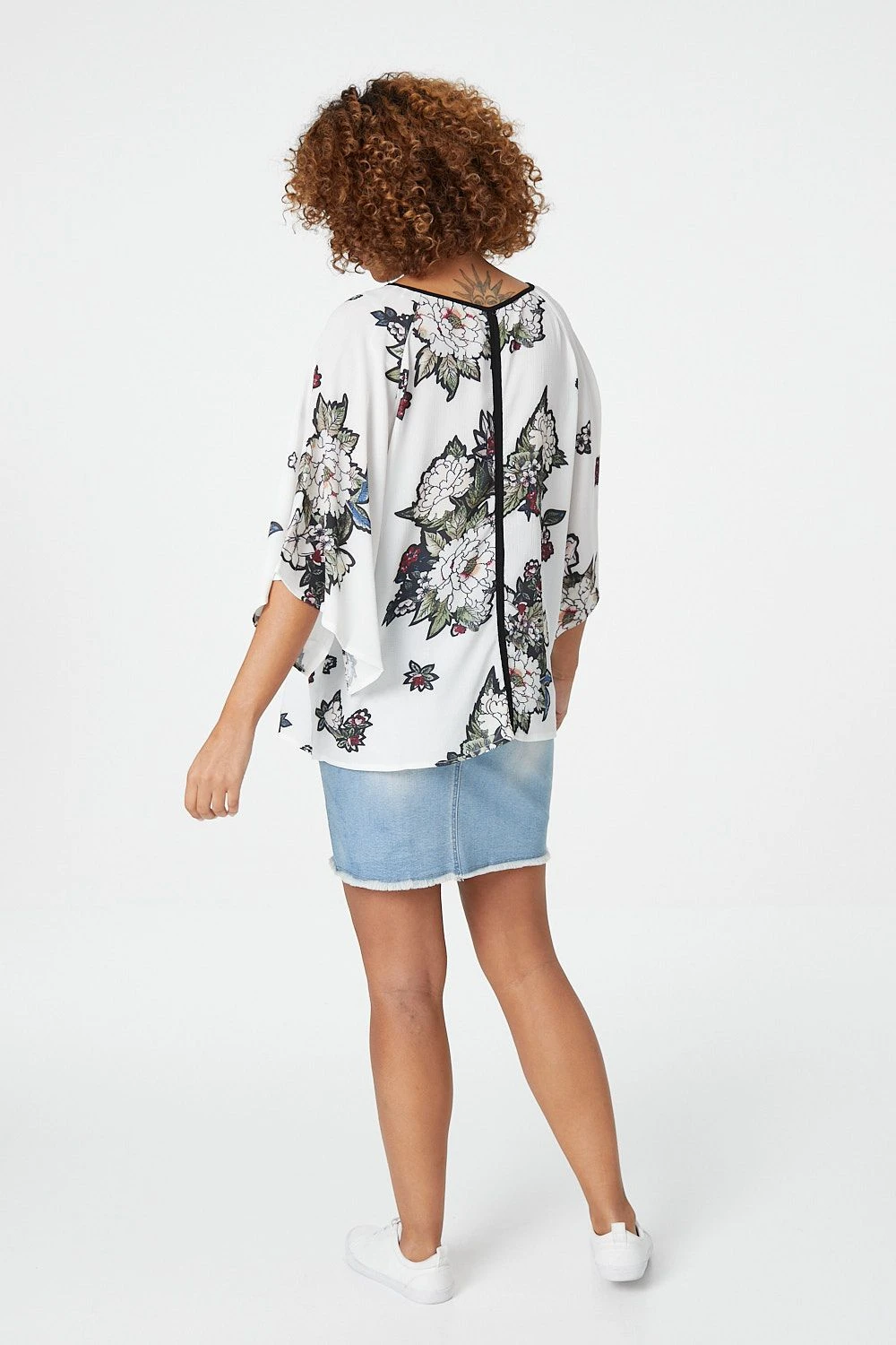 IZABEL LONDON | Boss the boardroom in style with this floral blouse. With contrast piping, half sleeves and a flattering round neckline. Wear with tailored trousers and flats.