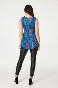 IZABEL LONDON | Add a vibrant pattern to your warm weather wardrobe with this peacock print longline top. It has a round neck, sleeveless fit, a cinched waist, and curved hem sitting just below the hips. Pair with neutral fitted trousers for an elevated weekend style that’s great for date night or drinks with the girls.