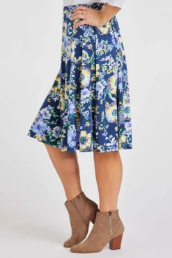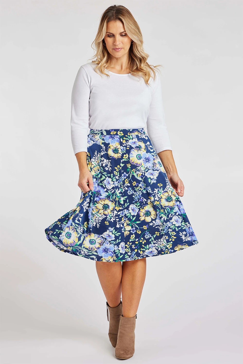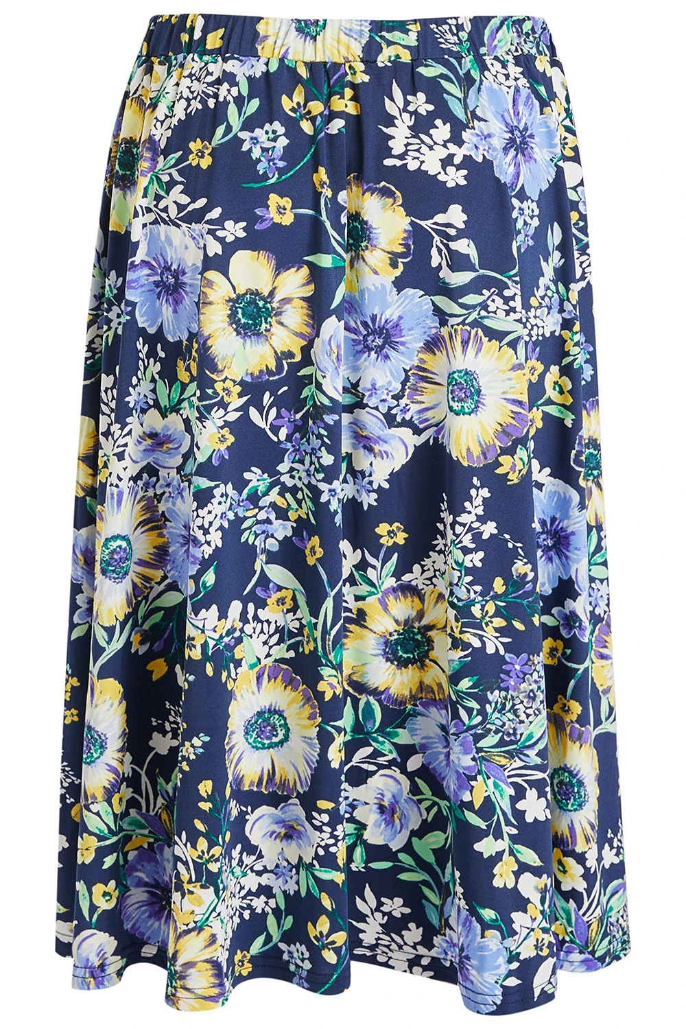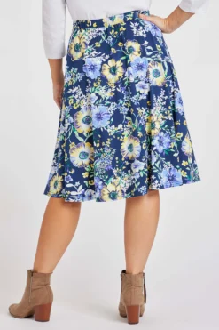 Stand out this Spring with this large floral design skirt. The colour scheme makes a bold statement and the contrasting flower colours make it a must-have this season. Pair with sandals and a cropped cardigan for a great Spring outfit.