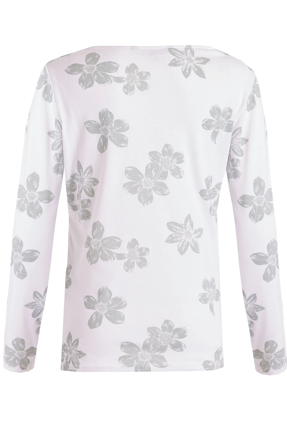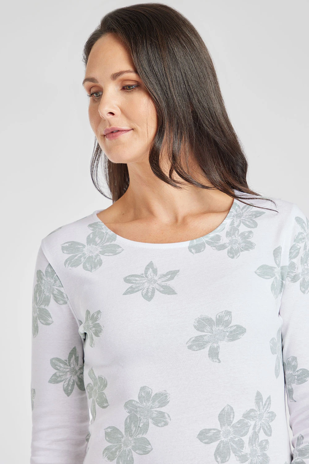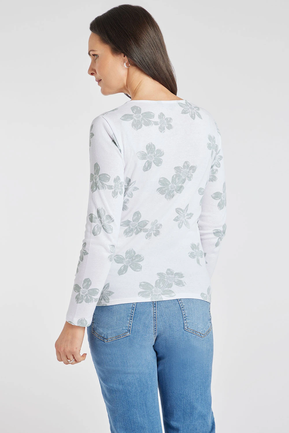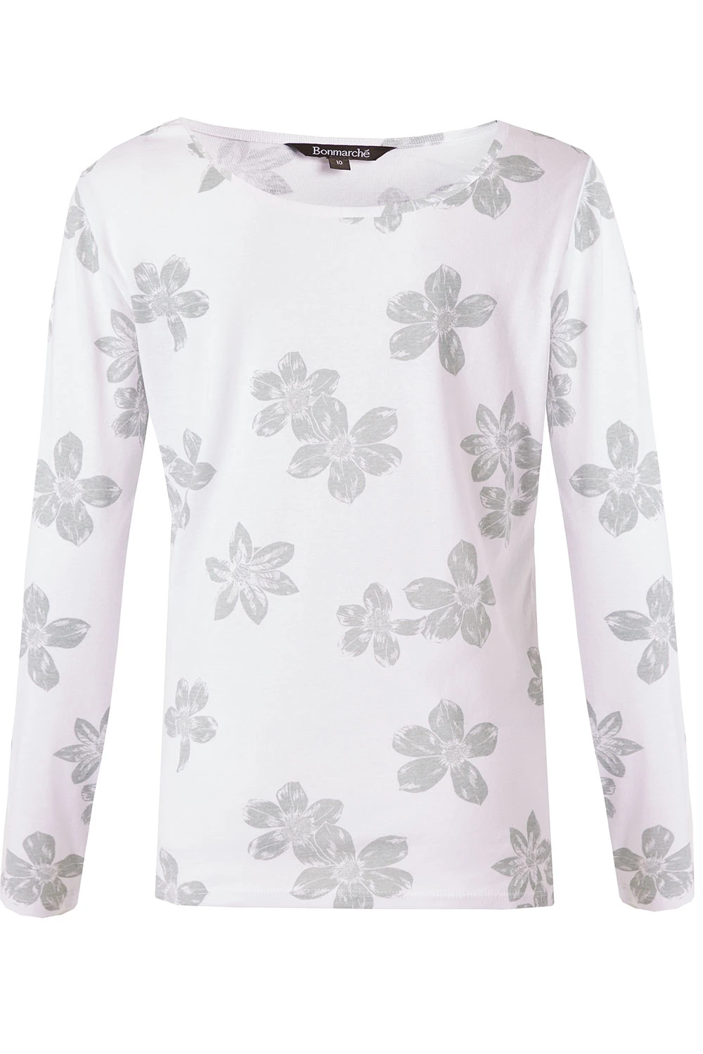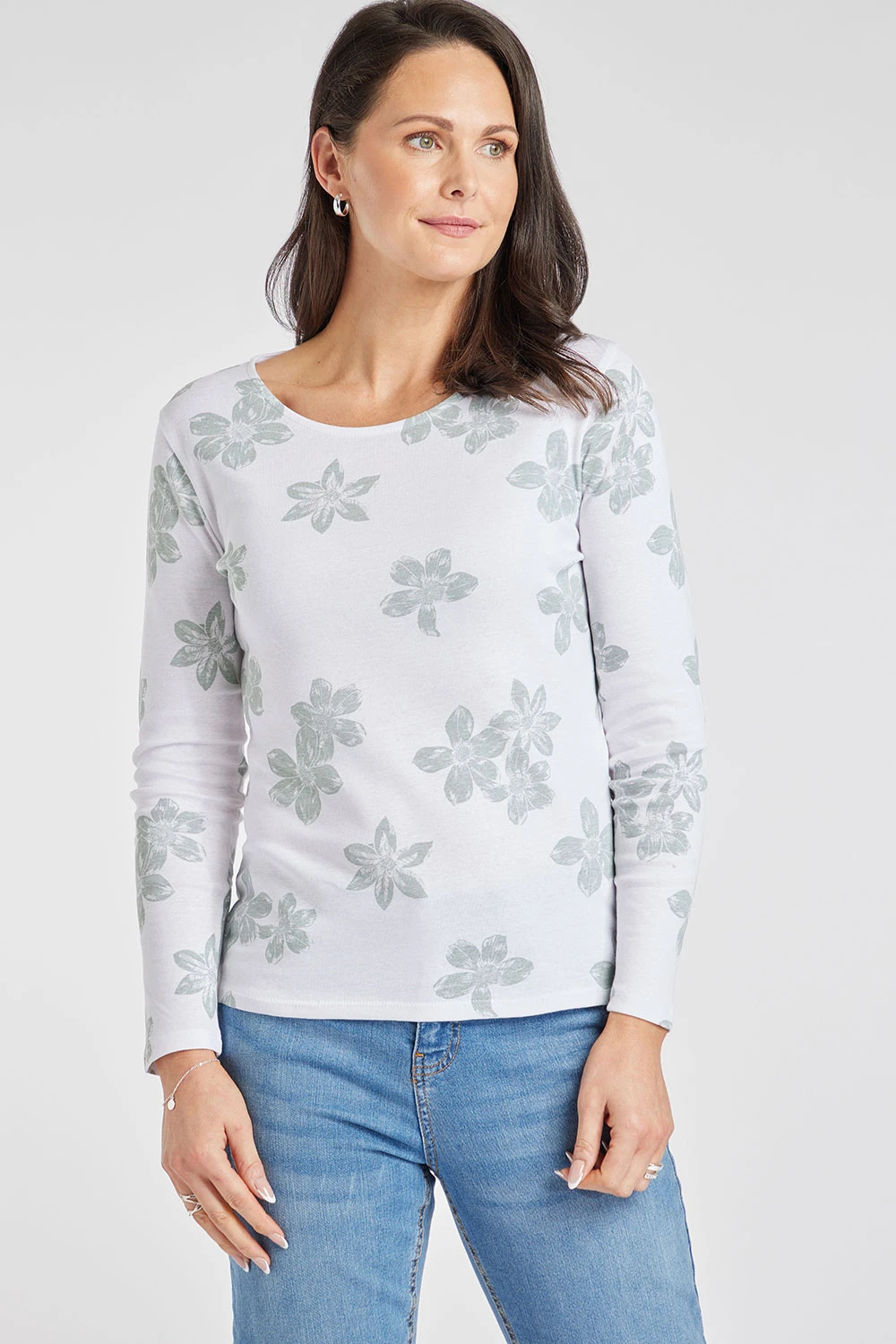 The outline of the floral design is a delicate and soft pattern that suits this top perfectly. Can be used for layering in the colder months or on its own with jeans for a casual weekend look.