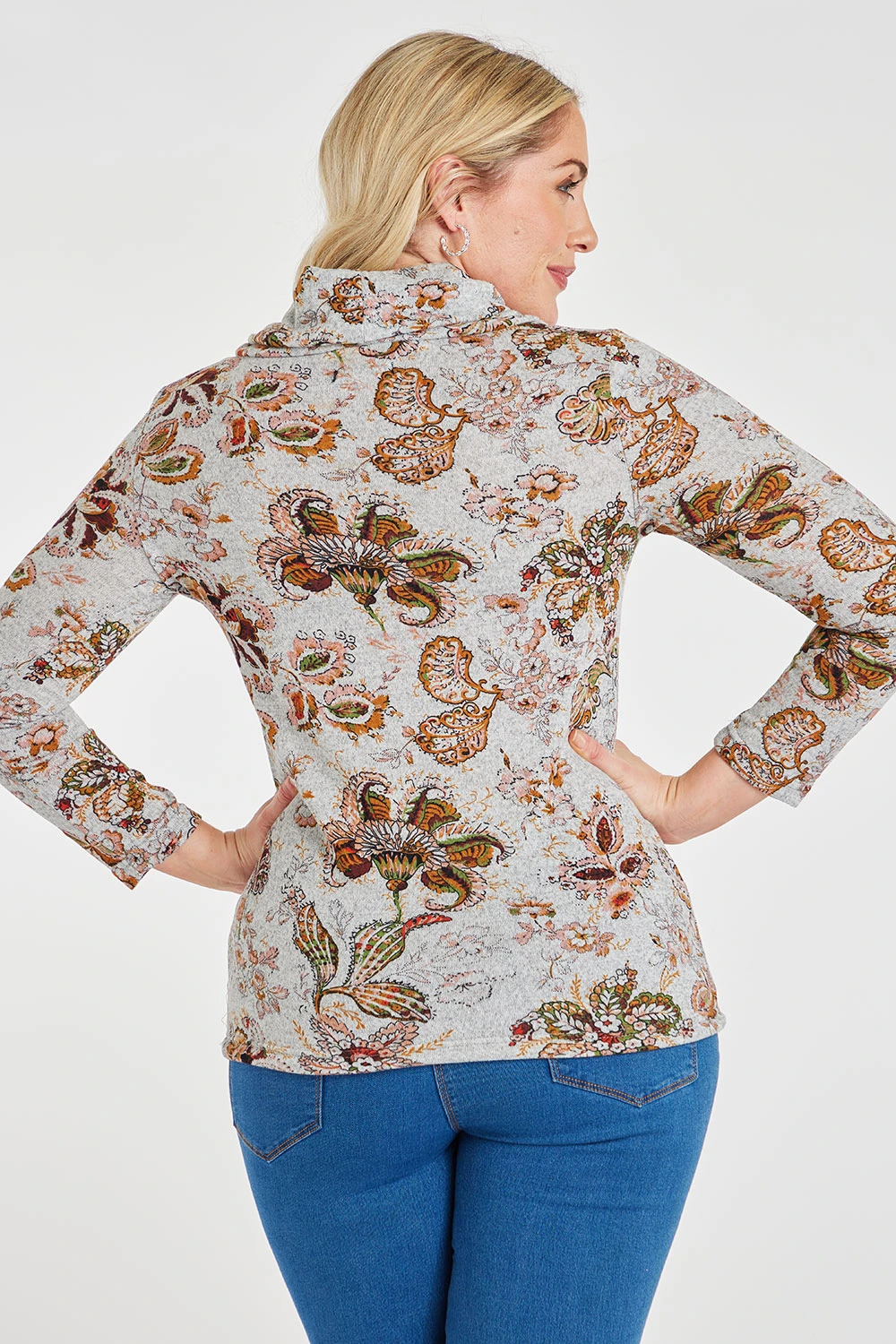 This long sleeve floral top is perfect for a casual outfit on the weekend. The cowl neck and long sleeves are great for keeping you warm and comfortable as the seasons change. The large floral print adds a feminine touch and tie hem for making it suit any body type. Pair with jeans and trainers for a comfy weekend look.