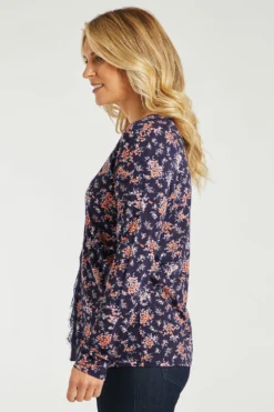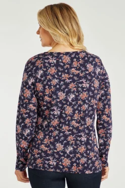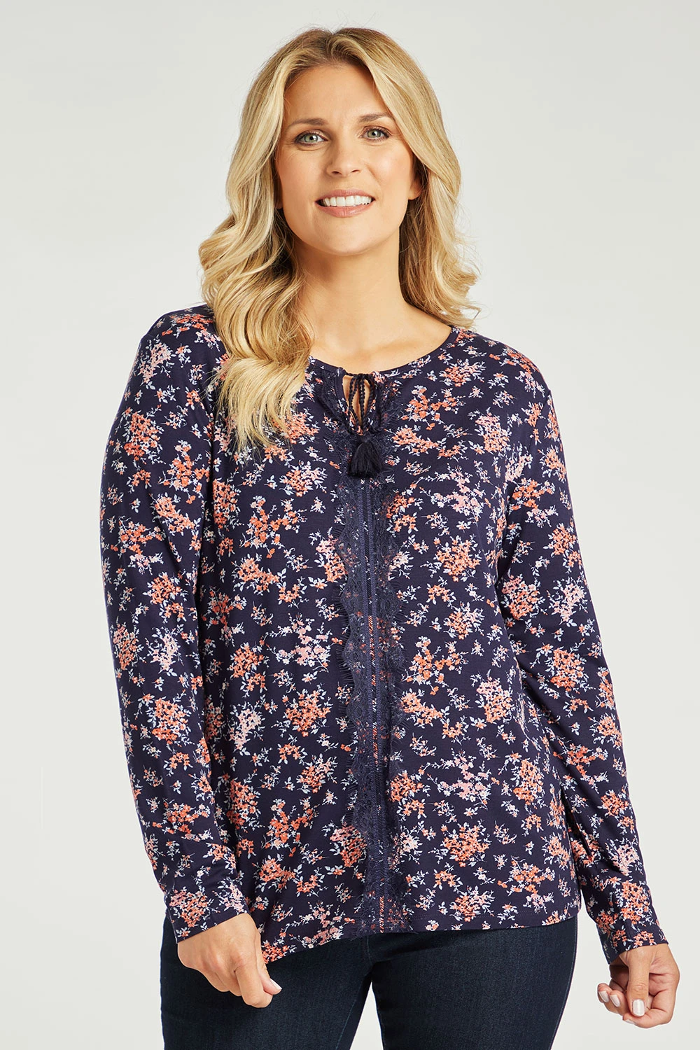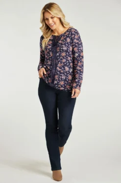 This stunning long sleeve floral top is a must in your autumn/winter wardrobe. The lace detail on the front adds a touch of femininity to the item and the floral is beautifully designed. Pair with jeggings for a day-to-day look.