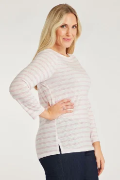 This top is a great basic item to add to your wardrobe. The striped design and round neck make it perfect to pair with jeans for a casual look.