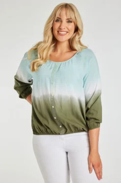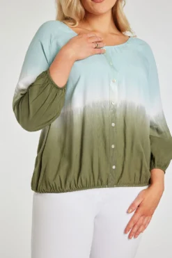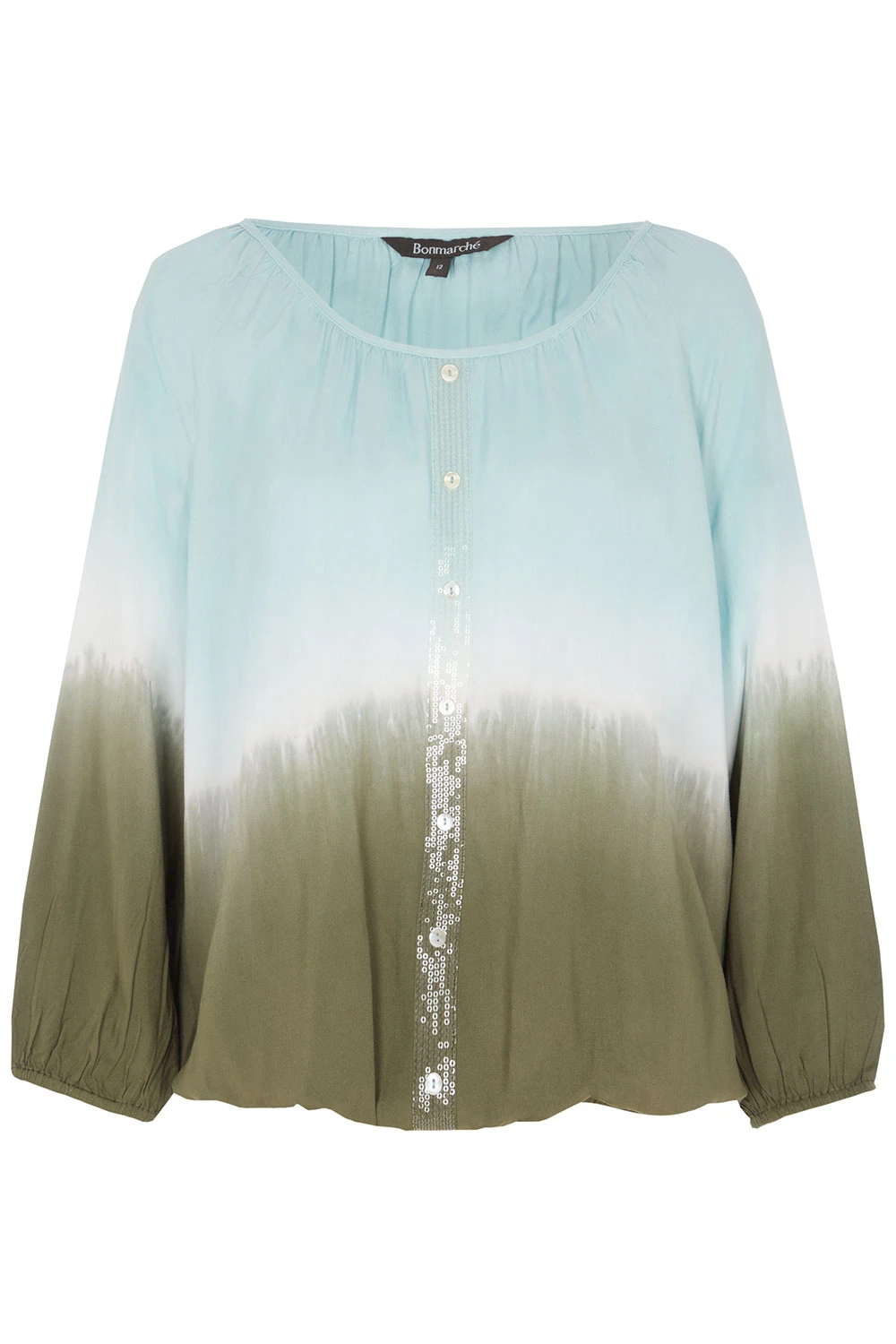 As loved by Lorraine Kelly, this tie dye blouse is a must have this season. The blue to green gradient is the perfect colour scheme for Spring/ Summer. Complete with long sleeves and a round neck for comfort and style. Wear it with jeans and trainers for a great casual Sunday look.