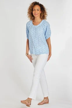 A stand out piece chosen by Lorraine Kelly herself, this button through daisy blouse is perfect for the Spring/ Summer season. The short frills and subtle colour scheme add a feminine touch to the piece. Pair with white jeans and sandals for a great Summer evening look.