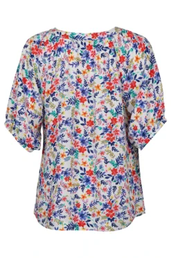 Add this stunning floral blouse to your collection this Spring. Perfect for casual weekends at home or for an upcoming holiday. Complete with frill detail on the sleeves and a ditsy floral design all over makes this blouse a must have. Wear with linen trousers and sandals for a great Spring/Summer look.