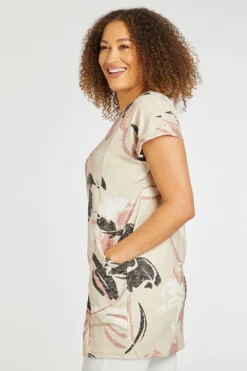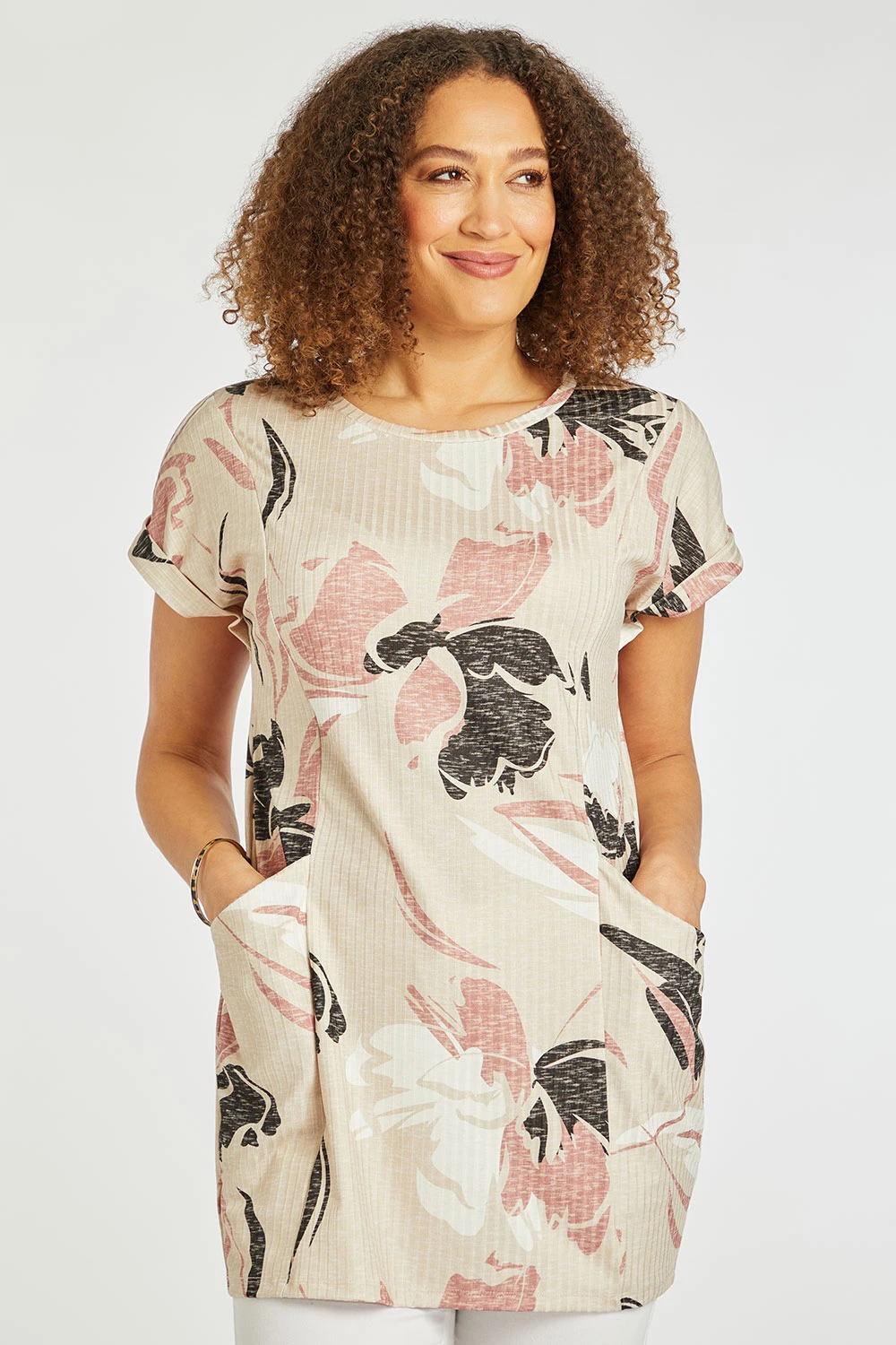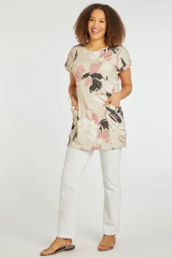 This floral tunic will make a great addition to your Summer wardrobe. Complete with short sleeves and pockets to keep you comfortable and stylish. The abstract floral design adds a feminine touch to the tunic. Pair with jeans and trainers for a great weekend look.