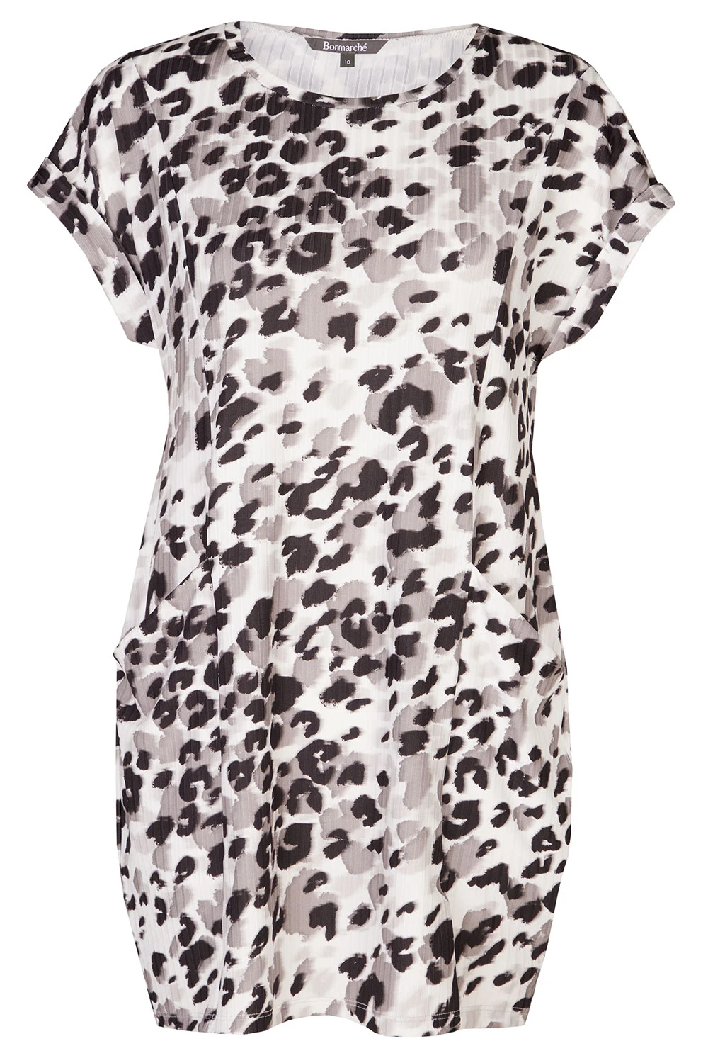 This animal print tunic will make a great addition to your Summer wardrobe. Complete with short sleeves and pockets to keep you comfortable and stylish. The animal dash design adds a feminine touch to the tunic. Pair with jeans and trainers for a great weekend look.