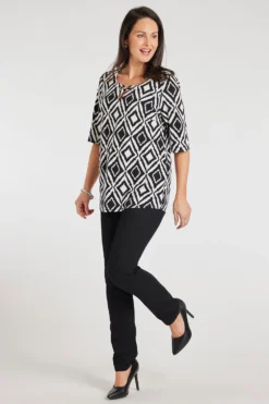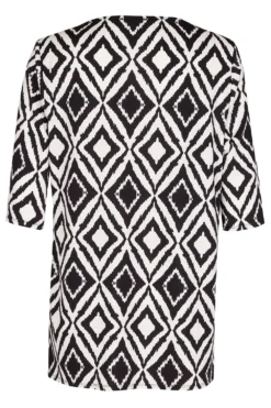 Stand out this season with this aztec design tunic. Perfect for pairing with skirts, trousers, or shorts. Complete with short sleeves and an eyelet detail on the neckline makes this tunic a must have.