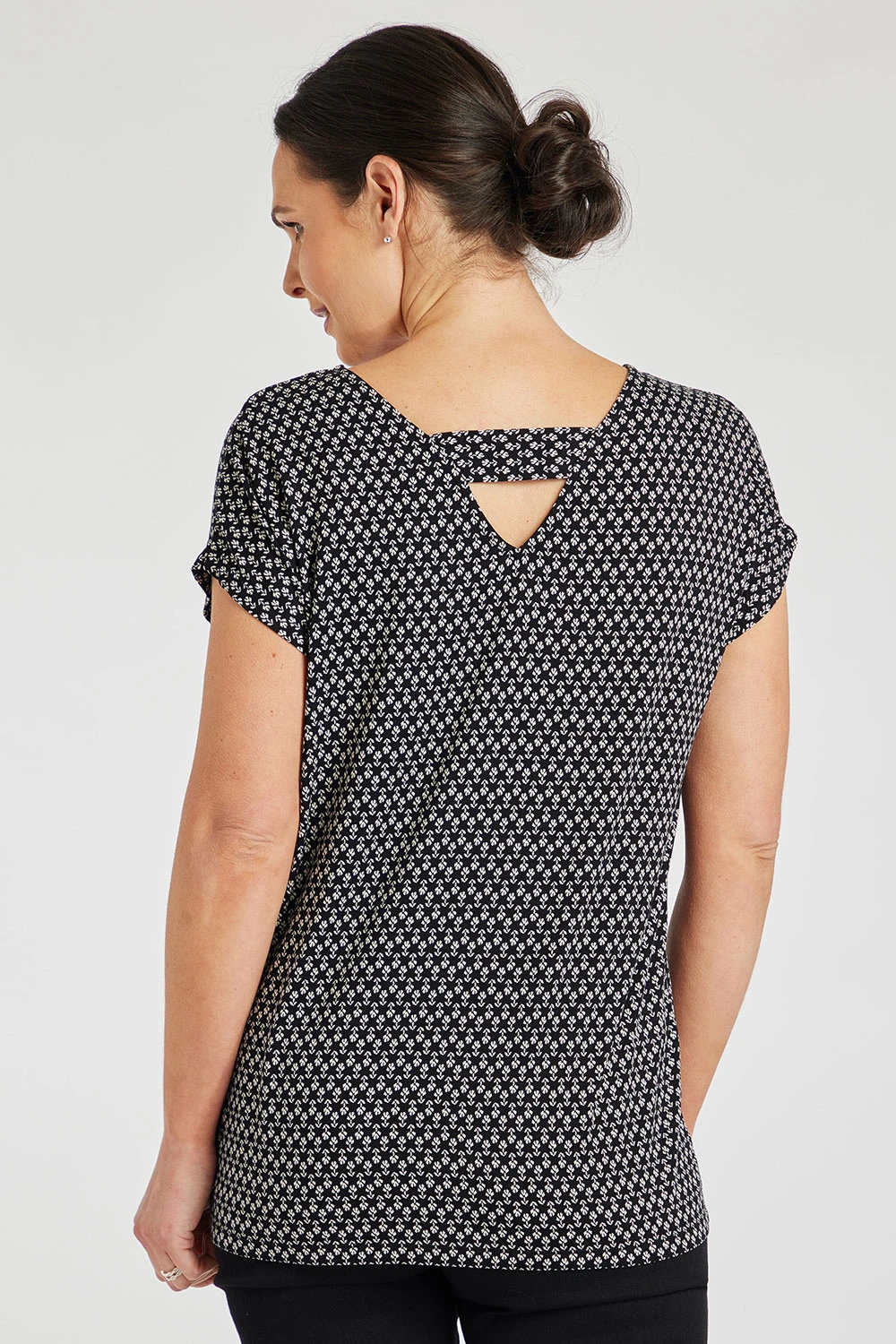 Add this foulard print t-shirt to your collection this season. The bar back design paired with the short sleeves will keep you cooler in hot weather. Wear it with shorts or jeans and sandals for a great casual look. Another beautiful piece chosen by Lorraine Kelly.