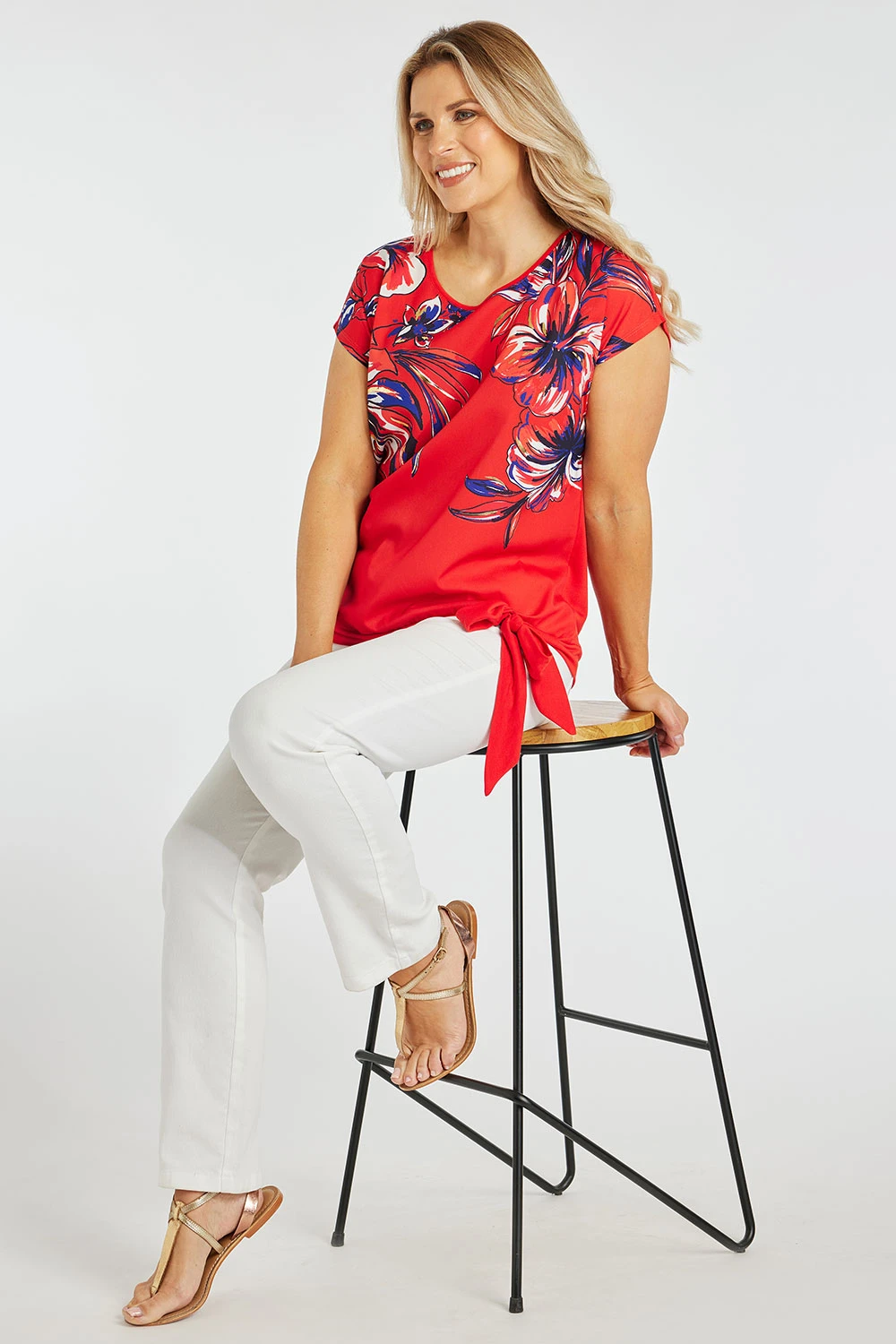 Stand out this Spring with this palm design top. The colour scheme makes a statement and the contrasting leaf colours make it a must-have this season. Pair with sandals and white linen trousers for a great Spring/Summer outfit.