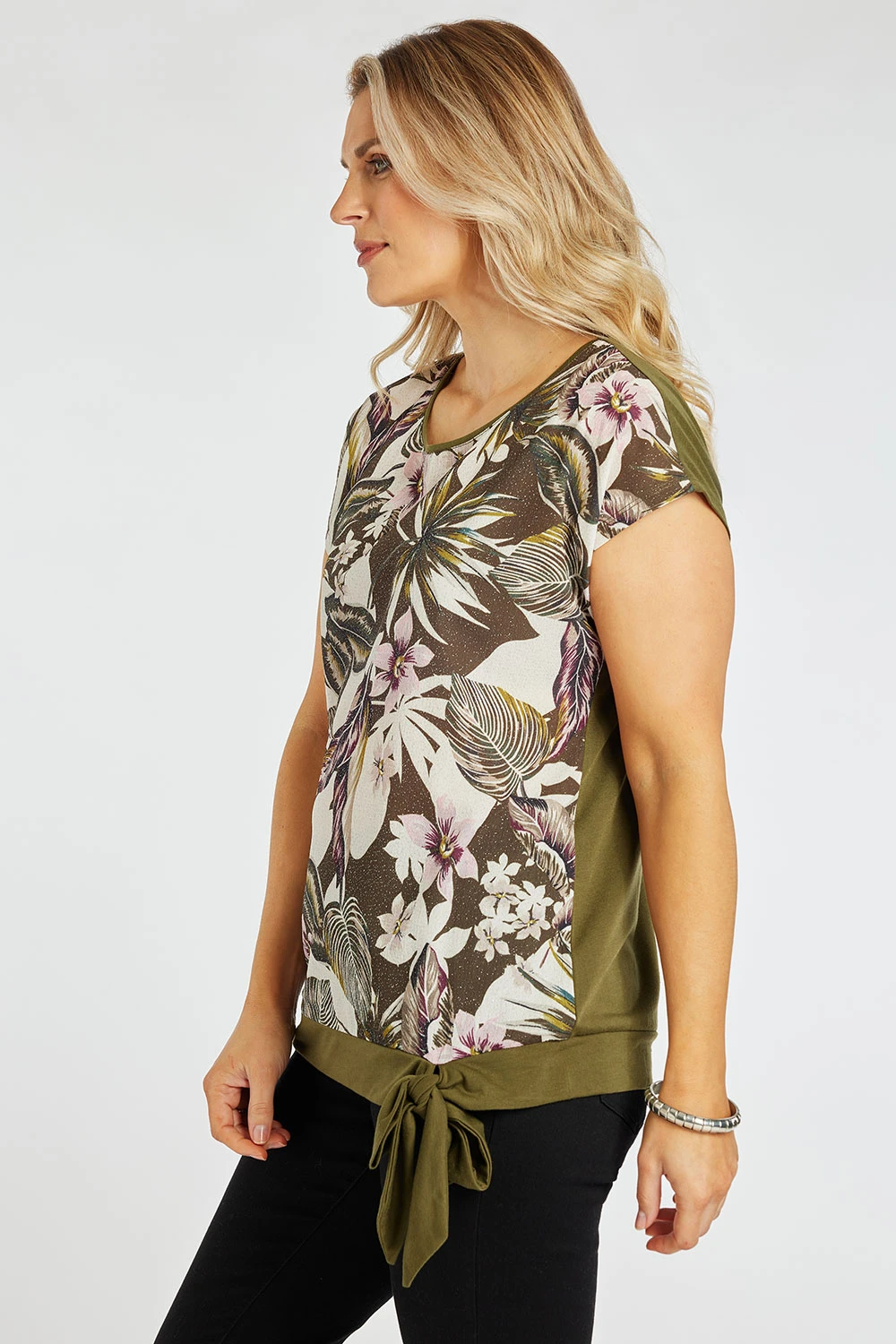 Stand out this Spring with this floral design top. The colour scheme makes a statement and the contrasting flower colours make it a must-have this season. Pair with sandals and white linen trousers for a great Spring/Summer outfit.