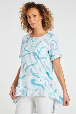 Add this statement swirl print tunic to your Spring collection this year. As loved by Lorraine Kelly, the swirl print paired with the breathable fabric makes it a great piece for Summer. Pair with white trousers and sandals for a perfect holiday outfit.