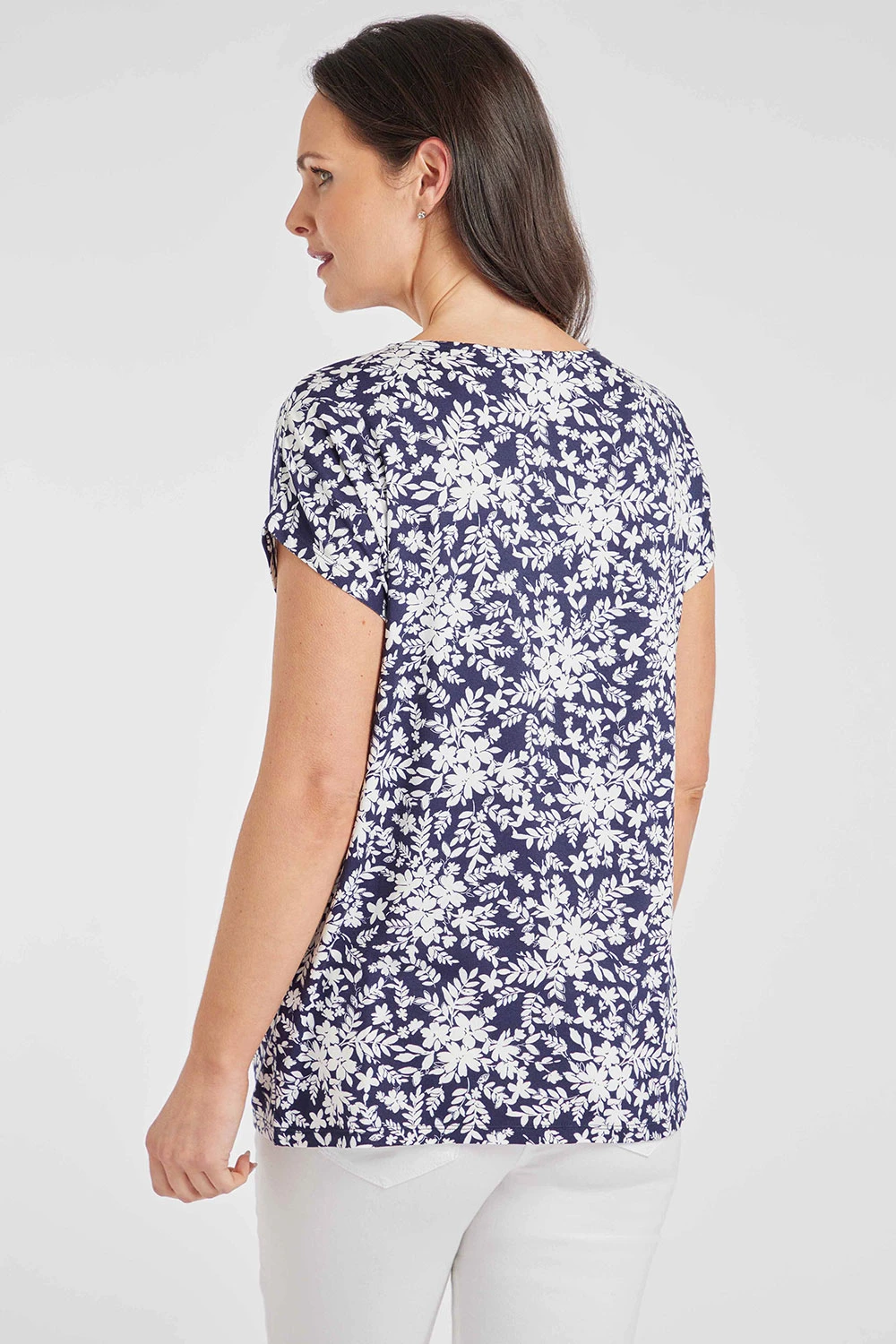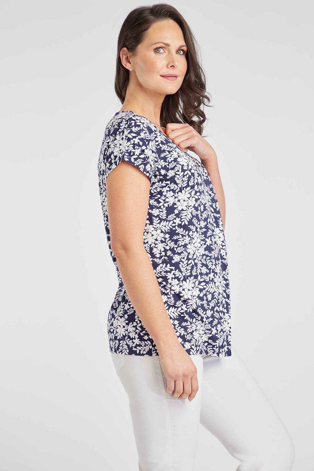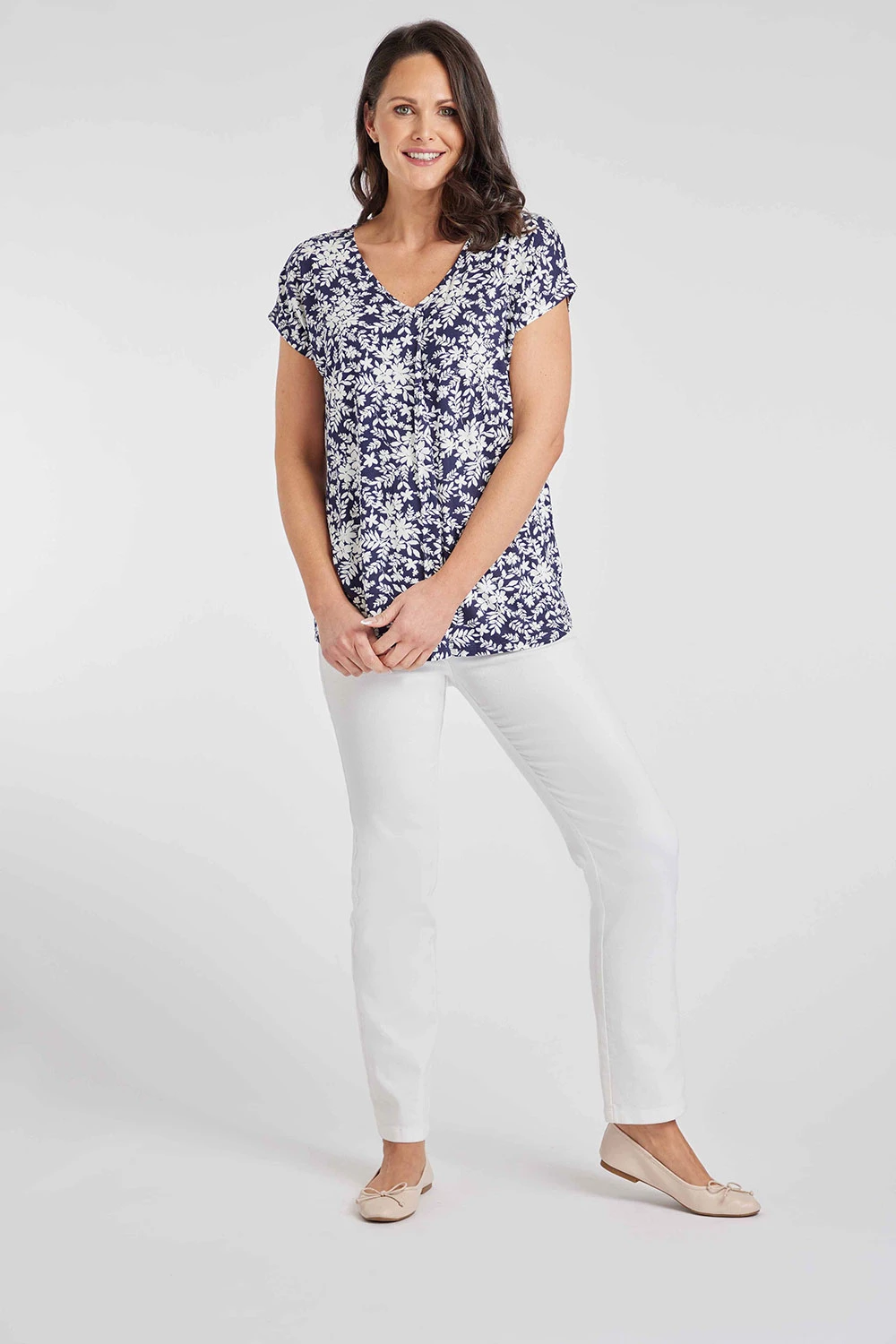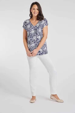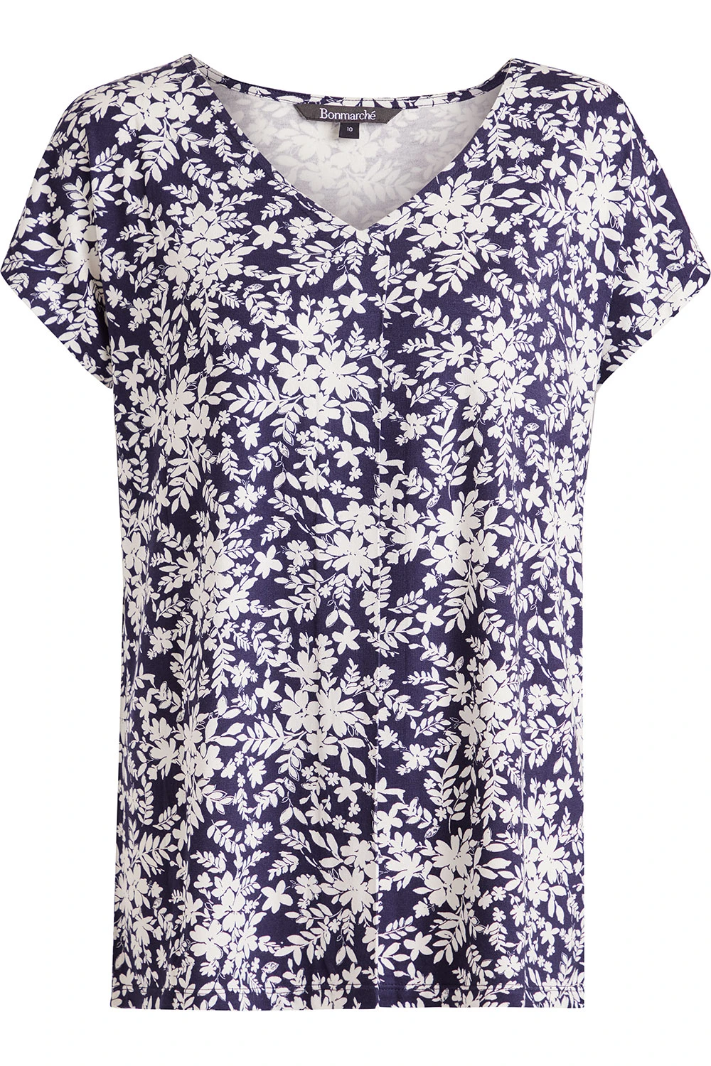 Be comfortable and fashionable this season with this beautifully designed multi ditsy print t-shirt. It is Included in Lorraine Kelly’s collection, Lorraine Loves. The short sleeves and v-neckline make it breathable for when the weather gets warmer. Wear with linen trousers and a small bag for a great holiday look.