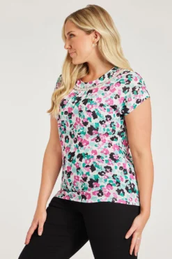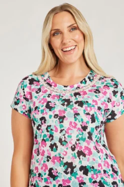 This animal print top is a must-have for your Sumer wardrobe. The vibrant design and colour scheme are on trend for the Summer holidays. Paired with a breathable material and lace insert make it a great addition to any wardrobe.