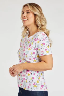 This short sleeve top with multi ditsy print is ideal for the cooler days. The t-shirt is made from 100% cotton to allow maximum comfort. For a casual look style the t-shirt with jeans and comfy trainers.