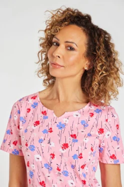 A flattering notch neckline lends a fresh twist to the classic T-shirt shape. It has an all-over ditsy print that will instantly brighten up your look. Simply wear with jeans or crops for an effortlessly stylish look.