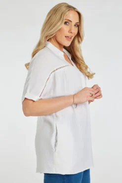 This collared plain linen tunic is a great staple for the Summer season. It is Included in Lorraine Kelly’s collection, Lorraine Loves. The plain design paired with the linen material makes it easy to style and comfortable to dress up or dress down.
