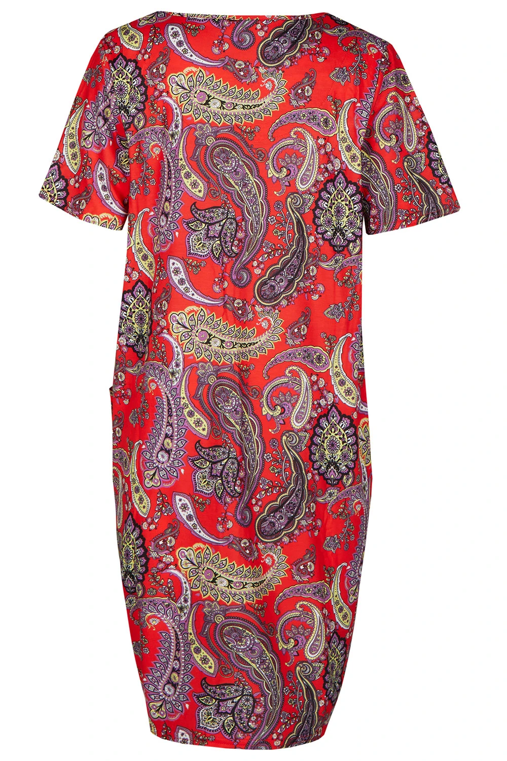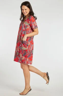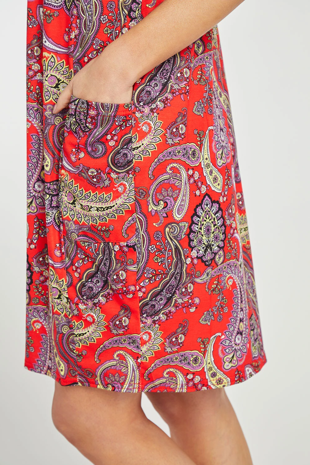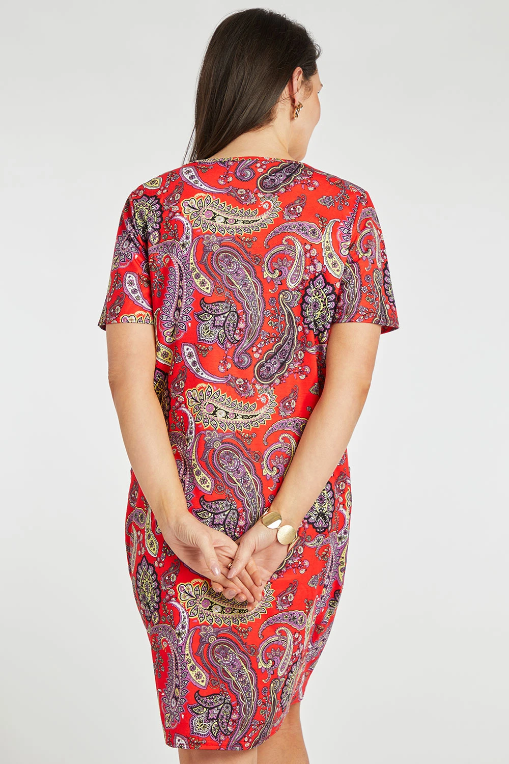 Add this short sleeve, printed dress to your collection this Summer. The beautifully designed paisley print against the red background paired with the breathable and comfortable fabric makes it a must-have this season. Pair with heeled boots and a light jacket for a great going out look.