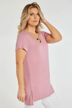 Get ready for Summer with this plain and versatile tunic. Complete with short sleeves and keyhole detail to keep it comfortable and fashionable. Wear with leggings or cropped trousers for a great casual holiday look.