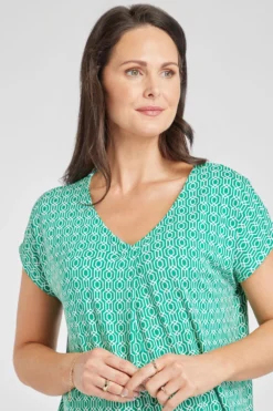 Stand out this season with this bright geo diamond t-shirt, a unique selection by Lorraine Kelly. Complete with a pleated design and short sleeves to keep you cool and fashionable this Spring. Wear with linen trousers and sandals for a great Spring time look.