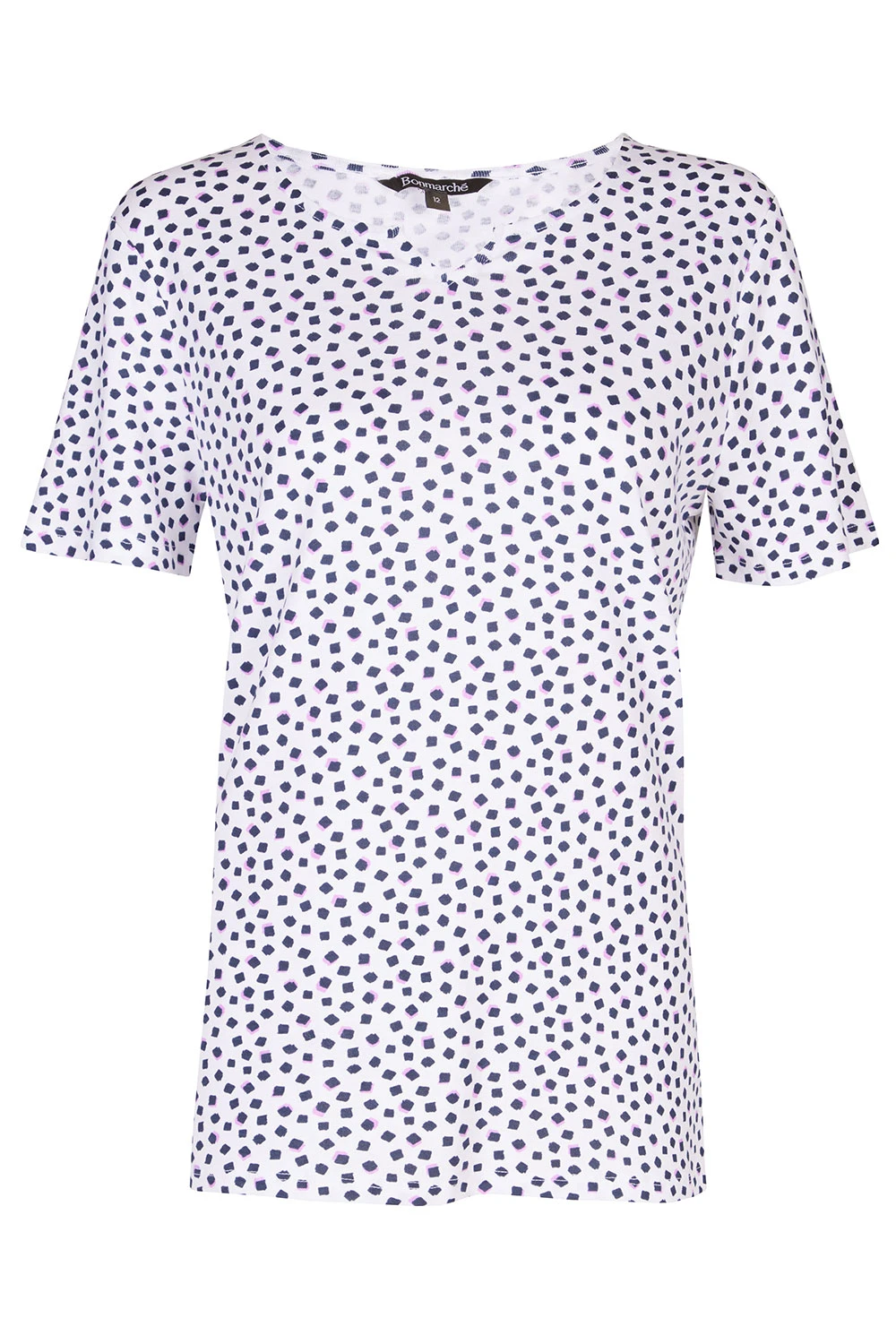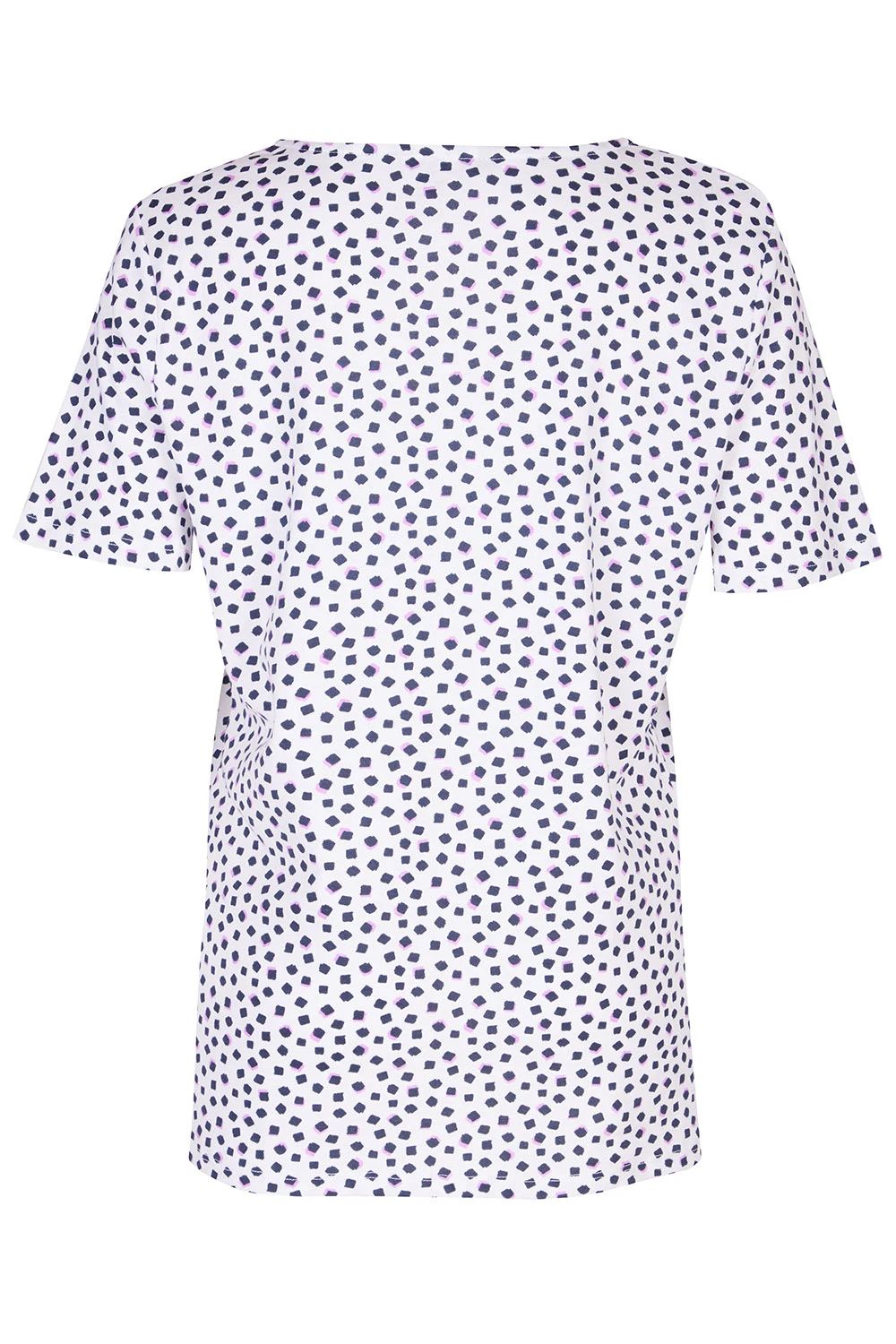 This short sleeve top is perfect for springtime. The square dot print adds a touch of sophistication. Complete with short sleeves and a notch neck to make it breathable and comfortable. Pair with your favourite jeans and trainers for a casual look.