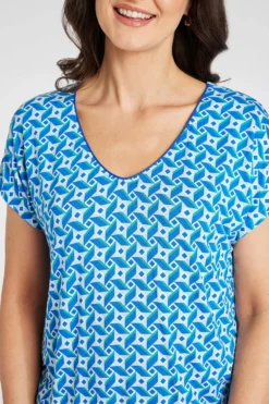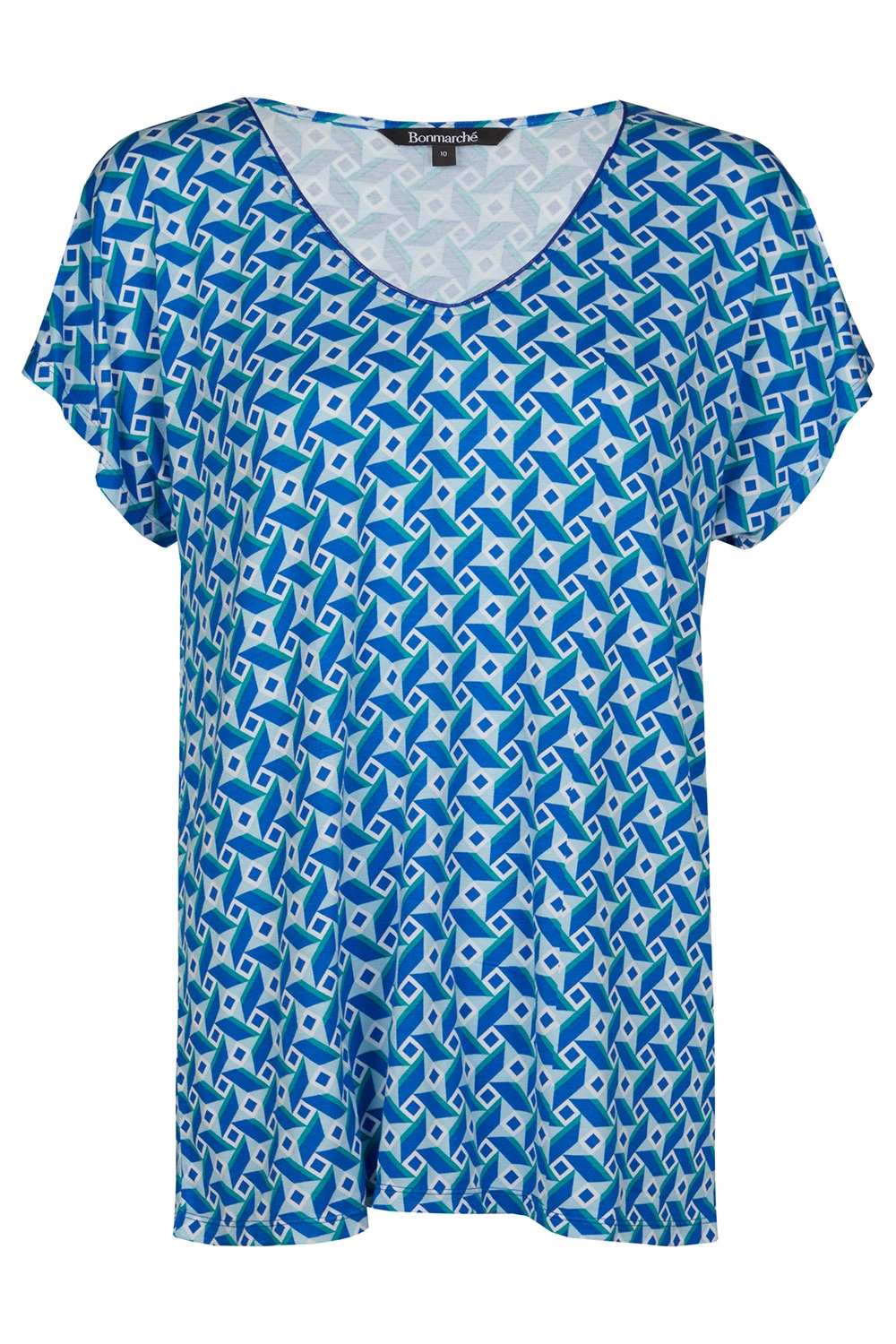 This stylish t-shirt features an all-oversquare geo print. With its short sleeves, bold pattern, and delicate V-neckline, this piece will elevate your look. Simply style with jeans or cropped trousers.