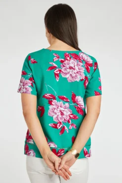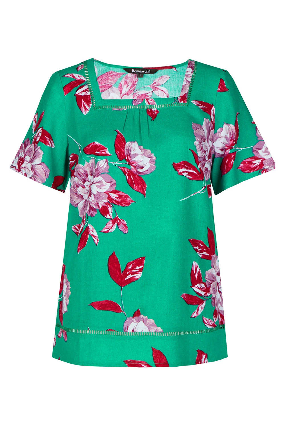 Stand out this Summer with this beautifully designed floral linen top. The fabric is breathable and the square neckline paired with the short sleeves will keep you comfortable and fashionable in hotter weather. Pair with white linen trousers and sandals for a great Summer look.