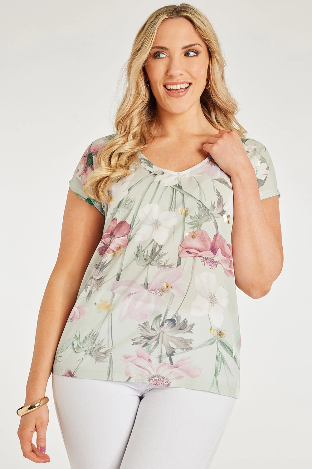 Make a statement this Spring with this beautiful floral t-shirt. The contrasting flower colour scheme makes a bold statement that’s sure to turn heads. To complete the perfect Spring/Summer look, pair the outfit with sandals and white linen trousers.