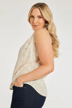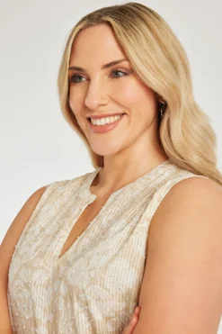 Get ready for Springtime with this folk floral top, as loved by Lorraine Kelly. The notch neckline paired with the sleeveless design makes it comfortable and breathable for when the weather is hotter. Wear with linen crop trousers and sandals for a great Summer look.