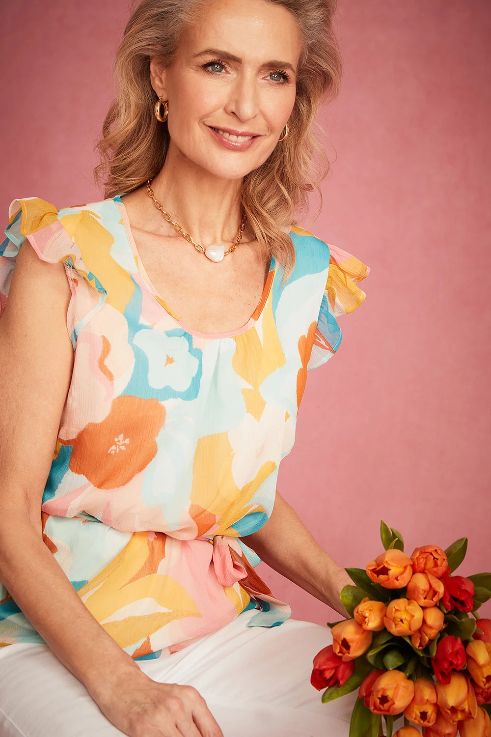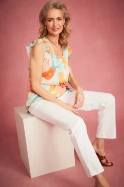 Add this large floral top to your collection this Summer. The longline design paired with a tie waist detail makes this a great top to pair with other items you may already have in your wardrobe. A great item handpicked by Lorraine Kelly. Wear with crop jeans and sandals for a great Springtime look.
