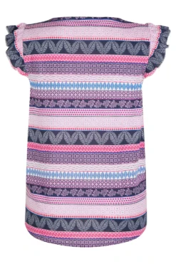 Add this sleeveless striped vest to your collection this Summer. The pink and purple colour scheme paired with the frill detail on the sleeves adds a feminine touch to a classic style. Wear it with linen trousers and sandals for a great holiday look.