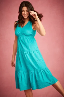 Get ready for Summer with this classic style sleeveless midi dress. A stand out piece chosen by Lorraine Kelly herself. Complete with a tiered style and plain design making it a must have for your wardrobe. Wear with sandals and a basket handbag for a great Summer look.