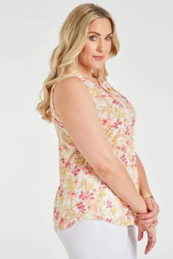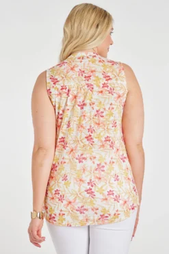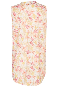 This sleeveless tropical ditsy design shirt is perfect for the Summer months. The tropical ditsy floral design paired with the button through style makes it breathable and fashionable. Wear with cropped trousers and trainers for a casual holiday look.