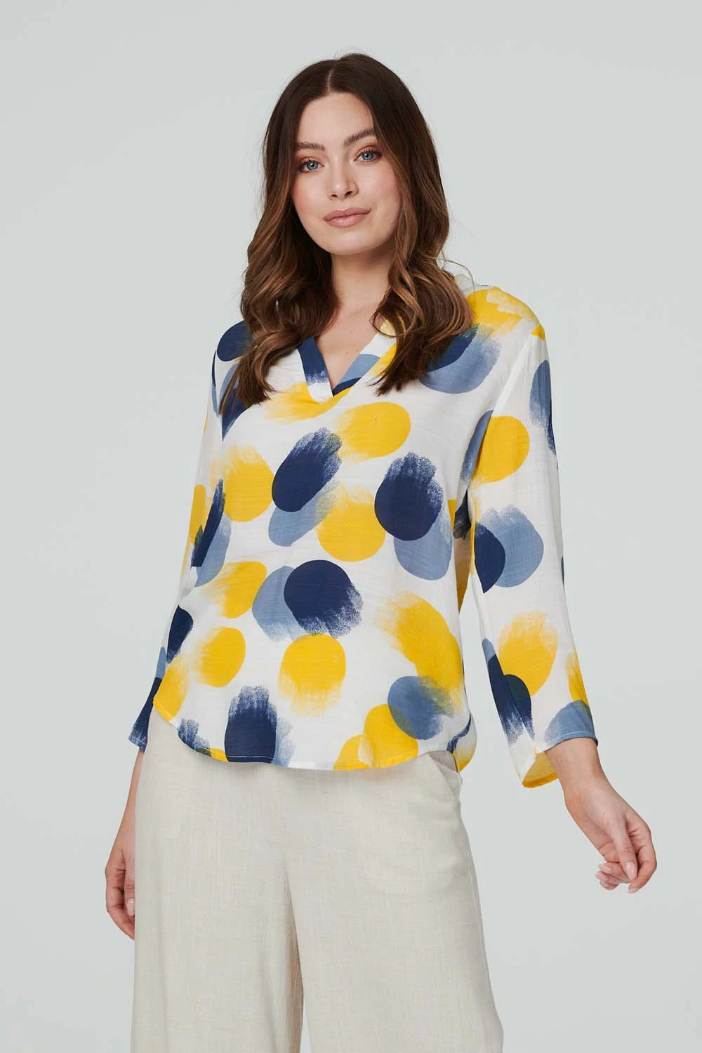 STELLA MORGAN | This large spot print blouse is a great staple for your Spring/Summer wardrobe. It can be paired with a pencil skirt for an office look or with jeans and boots for a smart casual look. The long sleeves and collar neck make it a versatile piece and great for styling with other items in your closet.