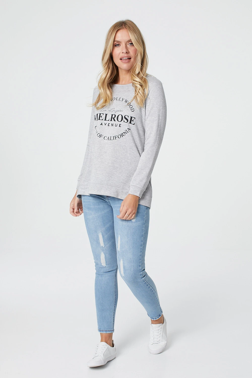 STELLA MORGAN | Add this Melrose Avenue Slogan Top to your wardrobe this season. The subtle slogan against the grey background makes it a versatile piece. Wear with jeans and trainers for a great casual weekend look.