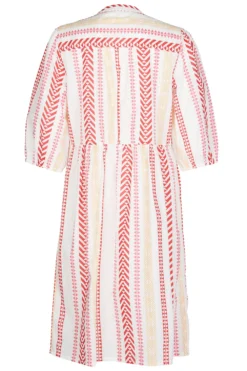 Feel Summery with this Striped Jacquard Print Dress. The colour scheme is perfect for the Summer paired with the V-neckline to keep it cool during hotter days. Pair with sandals and a light jacket for the perfect weekend out look.