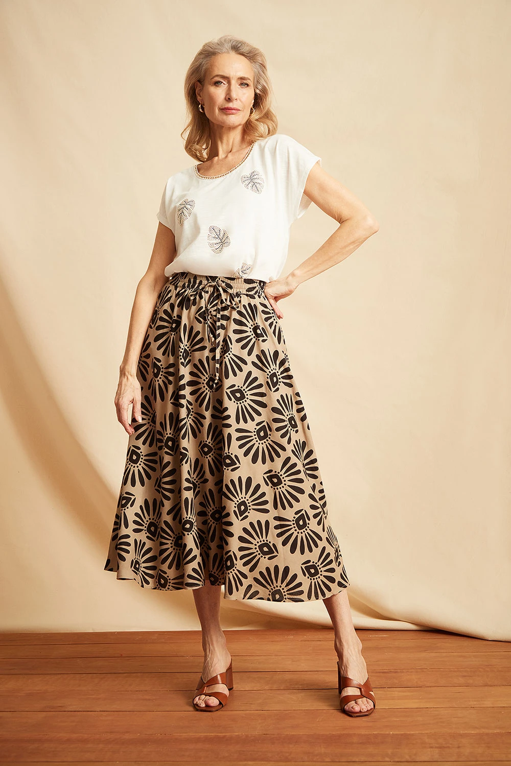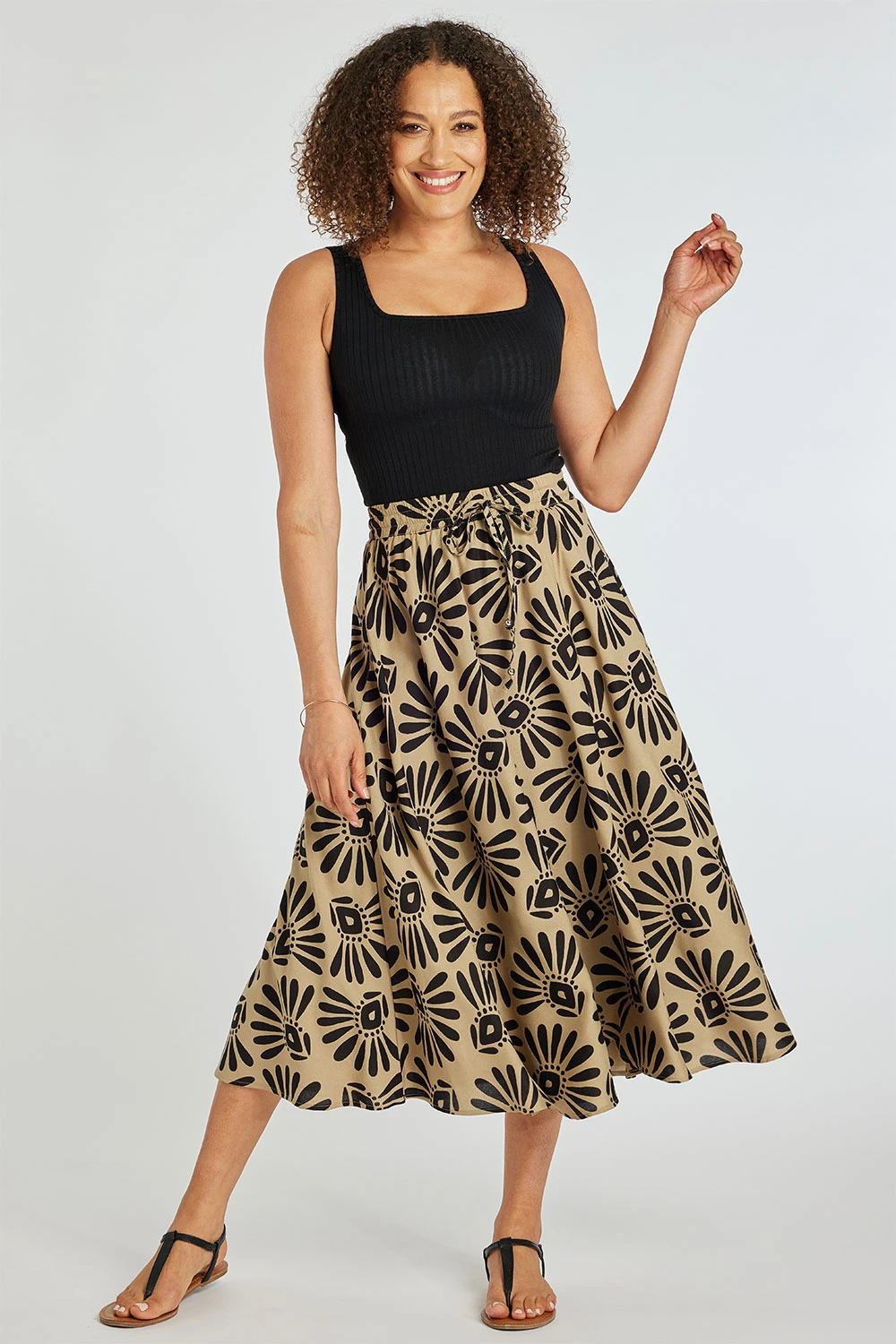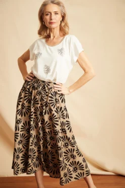 Get ready for Summer with this tribal stamp design skirt. Complete with a drawcord detail and lightweight material to keep you comfortable and stylish this season. Wear with a plain vest top and sandals for a great holiday look.