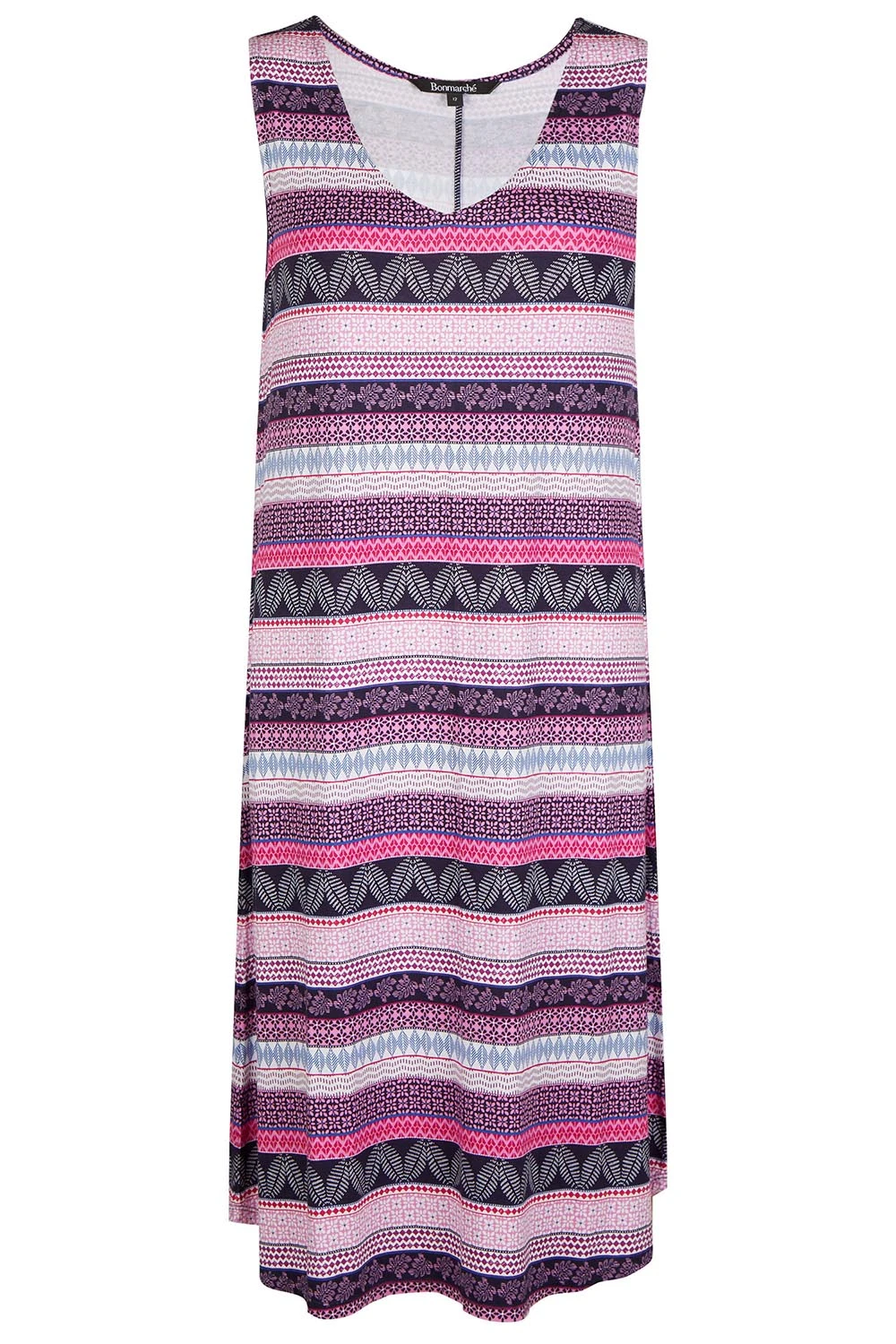Get ready for Summer with this beautifully designed tribal striped print swing dress. Complete with a sleeveless design and jersey material to keep you comfortable and stylish this season. Wear with sandals and a light jacket for a great evening Summer look.