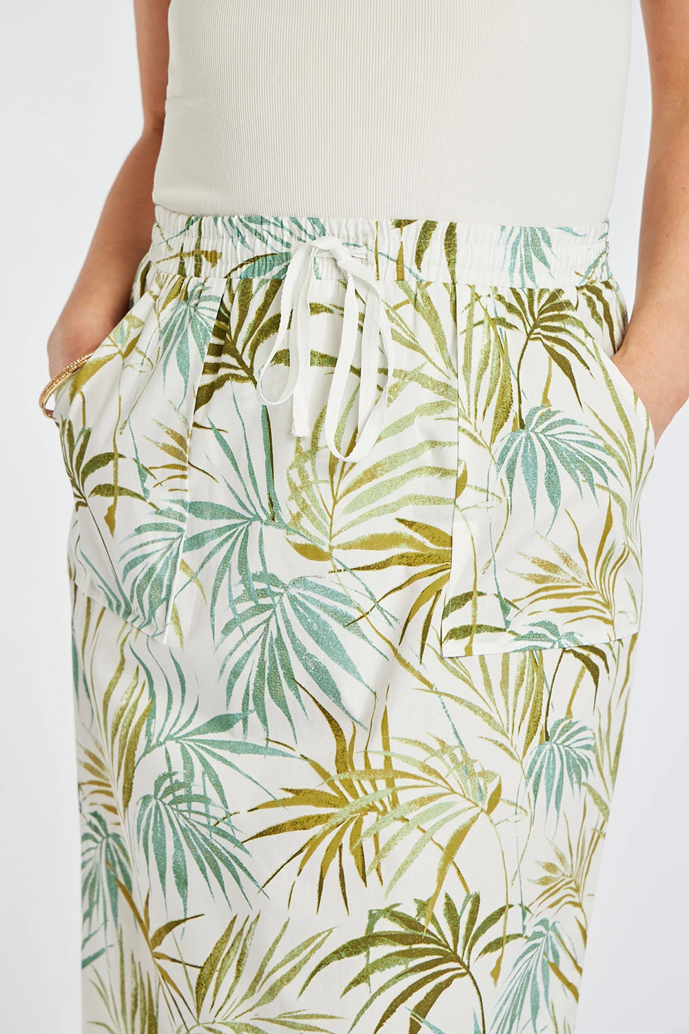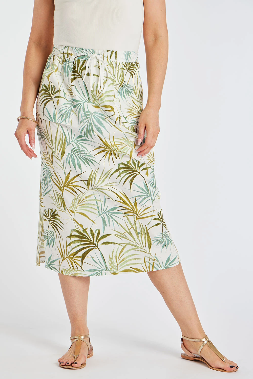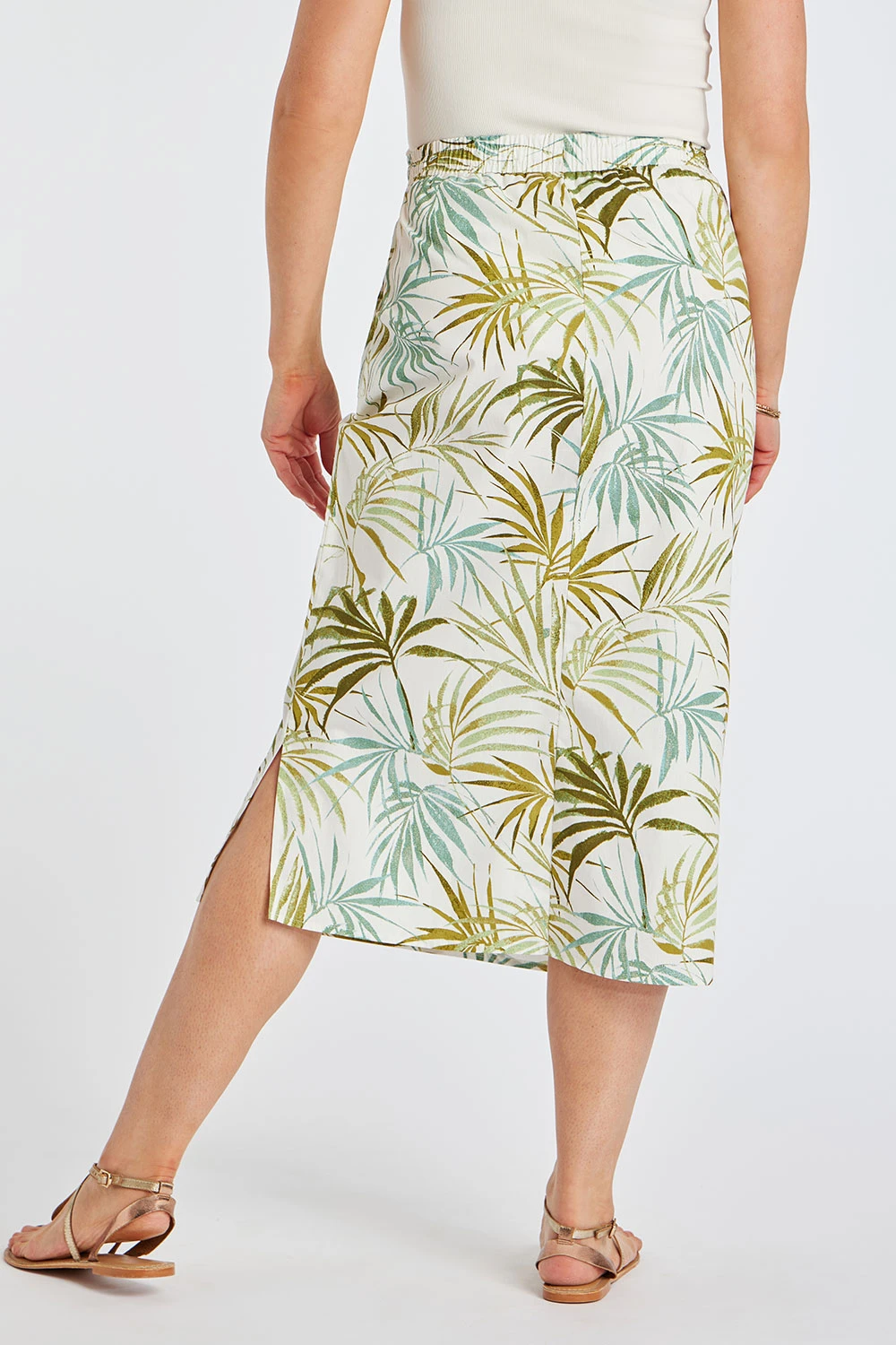 Be comfortable and stylish this Summer with this palm print skirt. The midi length and straight design make it a staple for any Summer wardrobe. Wear it with a vest top and your favourite sandals for a great holiday look.