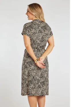 Add this beautifully designed zebra print dress to your collection this Spring. Complete with a detachable belt. The short sleeves and midi length make it a must-have this season. Pair with sandals and small bag for a great Summer look.